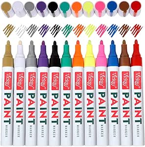 Amazon Com Paint Pens Permanent Markers For Rock Painting Stone Metal Glass Wood Fabric Set Of 12 Vibrant Colors Medium Tip Paint Markers High Volume Ink For Diy Craft Projects Quick Drying Christmas Gift Home