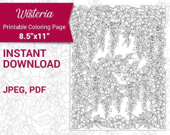 Printable Adult Coloring Page Pdf And Jpeg Digital Wisteria Etsy